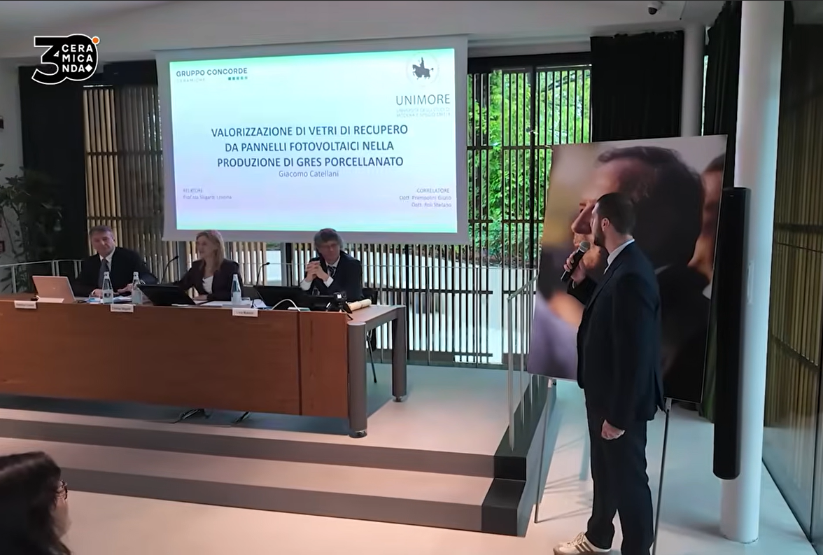 - Giacomo Catellani (MSc in Materials Engineering), who turns waste into a resource by reusing decommissioned photovoltaic panels as raw material for more sustainable ceramic bodies, reducing the use of feldspar without compromising the production process.